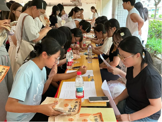 活动中,同学们热情高涨。“月饼拼图”挑战里,参与者争分夺秒,3分钟内拼出月亮、玉兔等中秋元素图案;“传递美好”区,一张张写满中秋祝福的纸条贴满墙面,传递温暖与思念;“诗词飞花令”现场,“举头望明月”“万里悲秋常作客”等诗句接连响起,尽显文化底蕴;“习俗快问快答”环节,大家踊跃抢答,在互动中加深对中秋文化的认知。