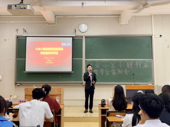 答辩会流程紧凑且高效。企业hrbp经理陈浩国首先进行开场发言,明确指出评审工作以“实践可行性”作为核心标准,着重强调要结合长发小寨在行业内的技术需求与发展方向,考量学子成果与企业实践的适配度,从而为奖学金评选确定了关键方向。