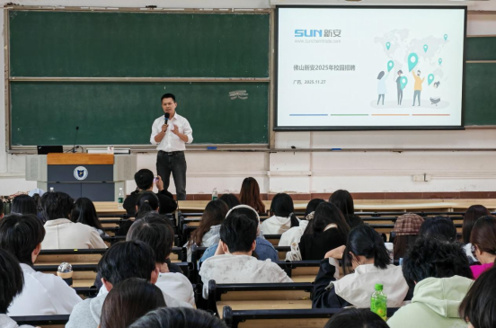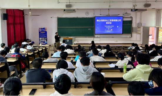 为搭建优质就业平台,深化校企合作,助力学子精准就业,11月27日,佛山市新安化工贸易有限公司(以下简称“新安化工”)专程来到我院,在教学楼1201举办了一场内容丰富、气氛热烈的校园专场宣讲会。本次宣讲会吸引了学院近两百名同学踊跃参与。