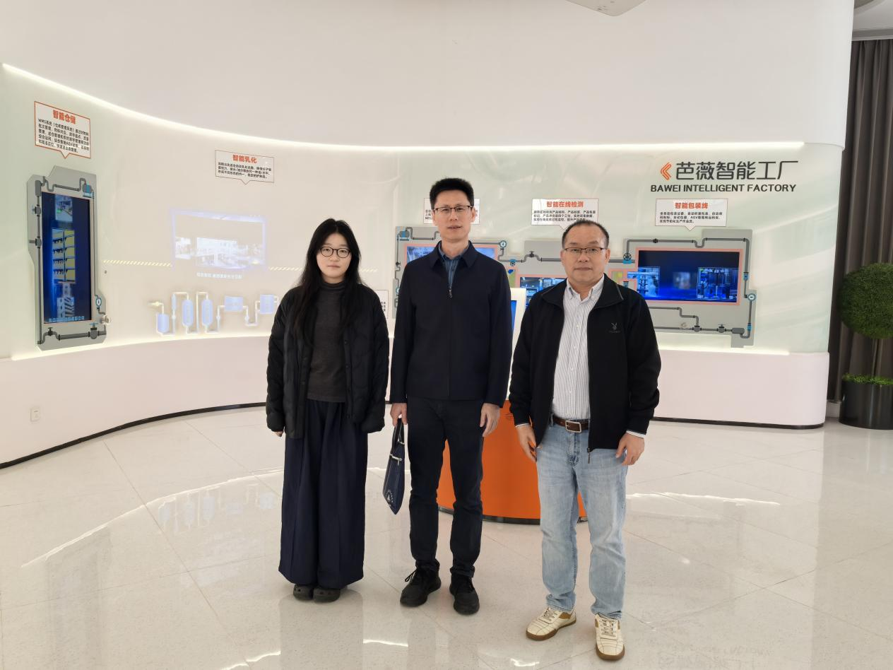 随后,黄泽龙一行前往广东芭薇生物科技股份有限公司,与公司高管石品靖经理及学院校友喻灿阳(2024届化妆品科学与技术专业)亲切交流。喻灿阳校友分享了自身职场成长经历,感谢学院的培养与支持,并结合行业发展趋势,为学弟学妹职业规划、技能提升提出建议。石品靖详细介绍了企业在化妆品ODM/OEM服务、功效性护肤品研发等领域的优势,表达了对医药化工、应用化学等专业人才的迫切需求,希望通过校企合作实现资源互补、协同发展。